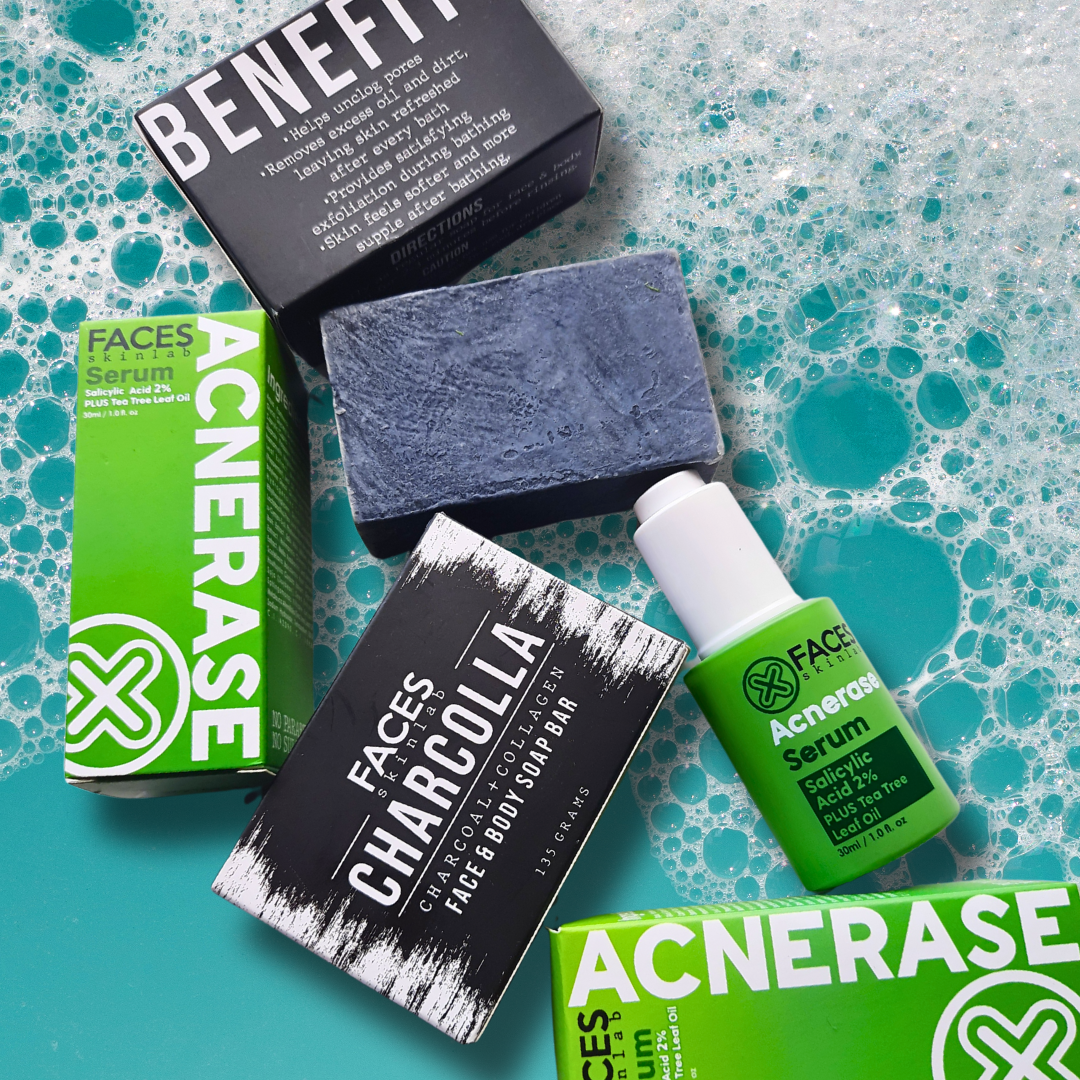 Breakouts don’t stand a chance with this powerful pore-purifying pair! The Charcolla Charcoal + Collagen Face & Body Soap deeply cleanses, removes excess oil, and keeps skin feeling fresh, while the Acnerase Serum (with Salicylic Acid & Tea Tree Leaf Oil) targets blemishes, unclogs pores, and soothes troubled skin.